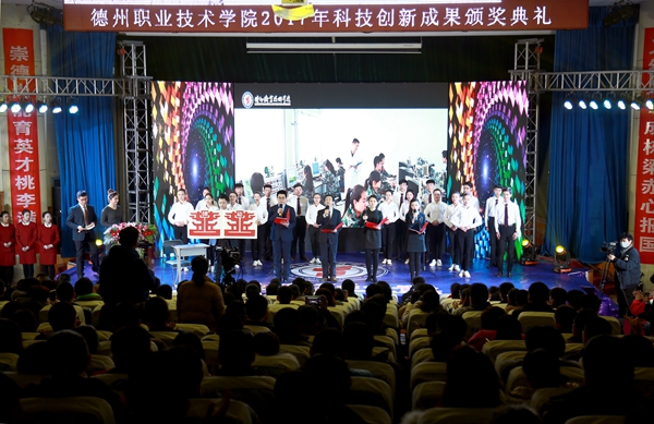 近日,德州職業(yè)技術(shù)學(xué)院2017年科技創(chuàng)新成果頒獎典禮在學(xué)術(shù)報告廳舉行,黨委書記樊兆杰、院長張同光等為獲獎師生頒獎,各類大賽獲獎師生代表參加典禮。
