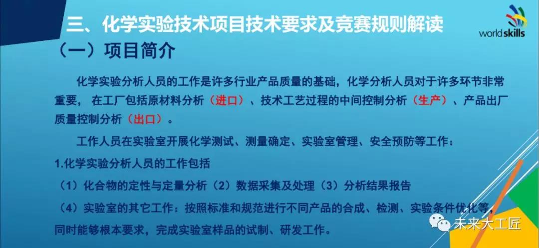 “在競賽過程中,以‘在指定樣品中進(jìn)行某離子含量的測定’為例題,選手需要自行制定工作計劃,領(lǐng)用所需要的儀器和藥品,進(jìn)行規(guī)范操作和規(guī)范記錄,填寫產(chǎn)品報告。”楊明明說。