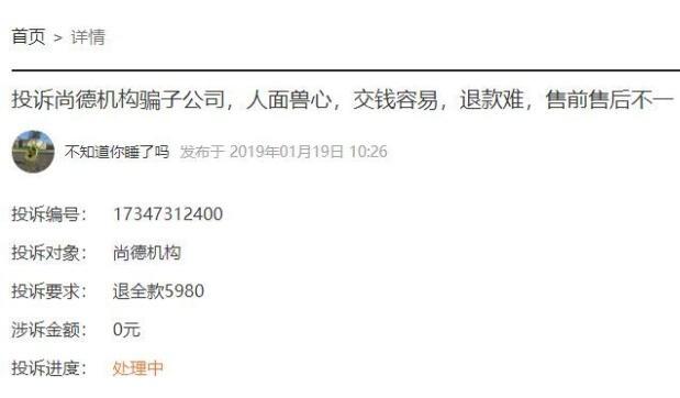 學(xué)員投訴退費(fèi)難:深陷騙局 尚德機(jī)構(gòu)辯稱你個(gè)人原因所致