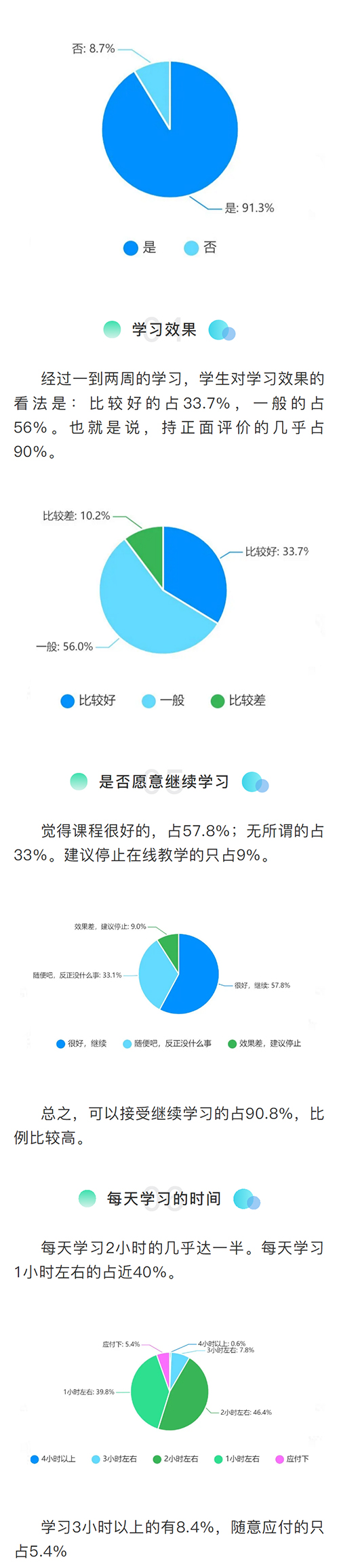 2.重視宣傳,發揮家長作用。學生能夠認真學習,態度也比較端正,還與我們積極宣傳有關。在線教學開始前,我們就和家長聯系,希望家長在家做好督促工作。家長配合比較好。