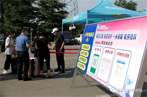 早晨的東大門,高大的紅拱門迎著朝陽,門口兩側和校園內,橫幅、道旗整齊有序,營造出濃厚的喜慶氛圍。校門口廣場上各系部的迎新點一字排列,老師們帶著各種材料,跟新生們一一核對,現場告知應該注意的防疫和學習生活事項,然后由志愿服務者們帶領新生進校園入住宿舍。院長丁漢邦、副院長劉成平、胡斌、劉華堂先后到現場查看。