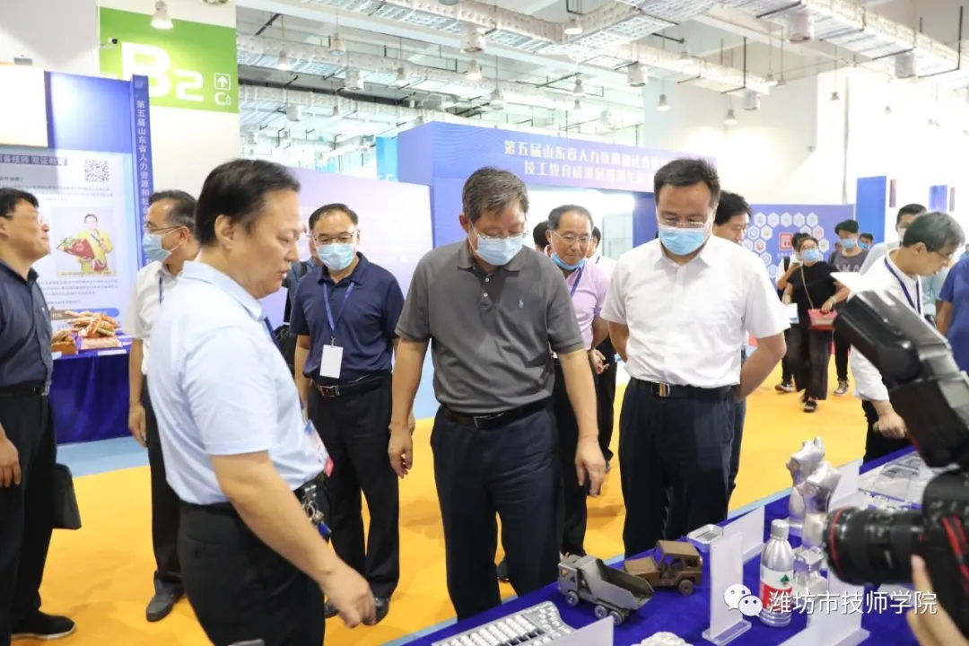 第五屆山東省技工教育成果展由省人社廳、齊魯晚報(bào)主辦,旨在推動(dòng)形成“學(xué)一技之長(zhǎng),做大國(guó)工匠”輿論氛圍,弘揚(yáng)工匠精神,為山東省新舊動(dòng)能轉(zhuǎn)換提供更多高技能人才支撐。活動(dòng)知名度高、影響力強(qiáng),主會(huì)場(chǎng)設(shè)在濟(jì)南高新國(guó)際會(huì)展中心,并通過(guò)網(wǎng)絡(luò)進(jìn)行直播。山東省人力資源和社會(huì)保障廳副廳長(zhǎng)侯復(fù)東在頒獎(jiǎng)儀式上為濰坊市技師學(xué)院頒獎(jiǎng),并到學(xué)院展區(qū)現(xiàn)場(chǎng)指導(dǎo)。學(xué)院副院長(zhǎng)劉華堂帶領(lǐng)相關(guān)處系師生20余人參加現(xiàn)場(chǎng)展示,在直播室通過(guò)直播介紹濰坊市技師學(xué)院育人特色及招生就業(yè)情況。