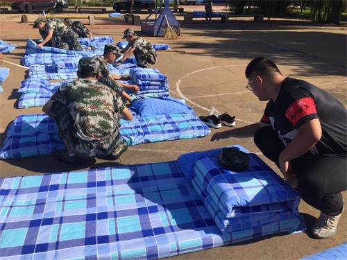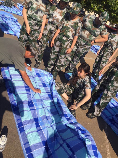 除了日常站軍姿外,教官們還教學生把杯子疊成“豆腐塊”