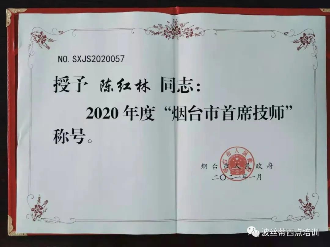 日前,煙臺(tái)市人民政府辦公室下發(fā)通知,公布了榮獲2020年度“煙臺(tái)市首席技師”稱(chēng)號(hào)的人員名單,波絲蒂職業(yè)培訓(xùn)學(xué)校的陳紅林校長(zhǎng)喜獲殊榮。據(jù)了解,獲得此次榮譽(yù)稱(chēng)號(hào)的煙臺(tái)市共有100人,是經(jīng)逐級(jí)推薦選拔,并組織評(píng)審委員會(huì)評(píng)審、考察、公示及市人才工作領(lǐng)導(dǎo)小組審定,并報(bào)市政府批準(zhǔn)選出的,是對(duì)工作在一線(xiàn)的專(zhuān)業(yè)技術(shù)人才的表彰,是我市激勵(lì)高技能人才的最高獎(jiǎng)項(xiàng)。