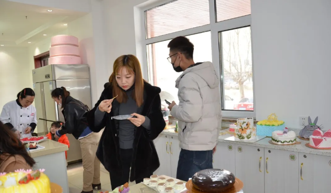大家走進煙臺波絲蒂西點培訓學校,近距離的了解了學校的教學理念和強大的師資力量,優雅的上課環境,一流的教學設備也讓來賓們心動不已,紛紛向老師咨詢課程,現場報名。