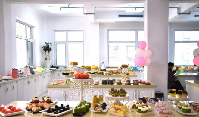 西點課程設置全面:焙烤班(面包專科班、蛋糕專科班、休閑干點專科班、月餅專科班)、裱花專科班、法式西點甜品班、韓式裱花班、時尚飲品咖啡班、私房創業班等,是培養中、西式面點師,中、西式烹調師、茶藝師、咖啡師、公共營養師的搖籃。
