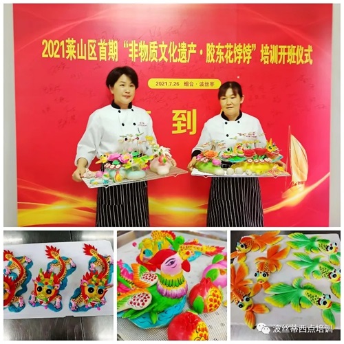 在煙臺市各級政府部門的支持下,煙臺波絲蒂西點培訓學校已連續(xù)開辦了三期“非遺·膠東花餑餑”培訓班,受到了煙臺市中西面點精英朋友們的認可與喜愛,也得到了良好的社會效果。