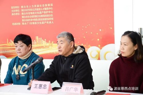 本次培訓是由煙臺市人力資源社會保障局的指導,煙臺市芝罘區公共就業人才服務中心主辦,煙臺市非物質文化遺產保護中心、煙臺市社會組織聯合會教育科技分會、煙臺波絲蒂中西糕點職業技能培訓學校聯合承辦。旨在為煙臺市的非遺愛好者們搭建了一個學習、交流的平臺,了解非遺,保護非遺,傳承非遺,歡迎你的加入。