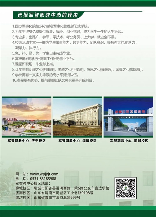 山東技校網 >> 菁菁校園 >> 上中職學校,實現出彩人生——軍智教中心致初中畢業生的公開信