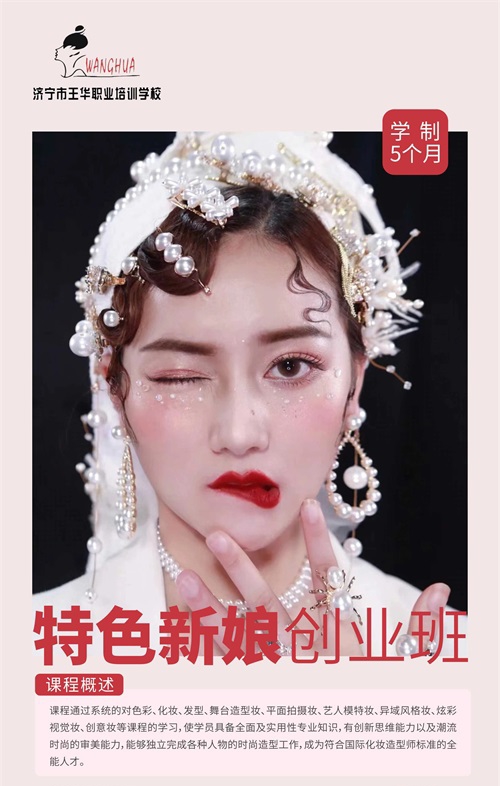 王華職業(yè)培訓學校開設多種課程,包括化妝全科課程、新娘跟妝班、日常化妝課程等,旨在為學生提供優(yōu)質的職業(yè)培訓服務,幫助學生掌握各類技能,為職場發(fā)展打下堅實的基礎。