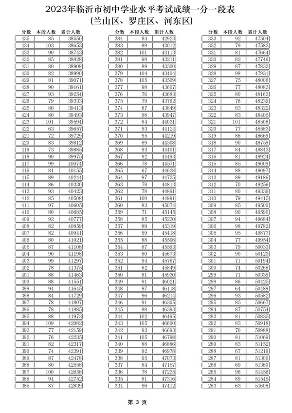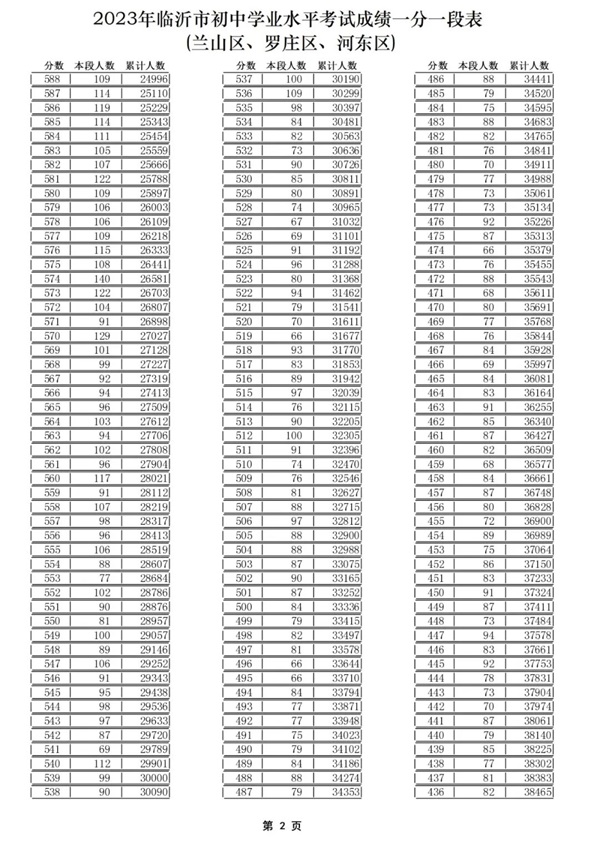 山東技校網 >> 菁菁校園 >> 2023年臨沂市初中學業水平考試成績一分一段表(三區)