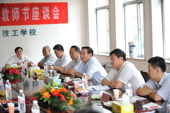 9月10日, 在第26個教師節到來之際, 淄博公司總經理兼博山電力技工學校校長徐峰、副總經理王照晨及人事部、財務部、辦公室等人員來到學校, 與教職員工歡聚一堂, 舉行了和諧、愉快的座談,向優秀教師頒發了證書,并代表公司送去了慰問金。徐總向教職員工表達了節日的祝福, 寄語全體教職員工樹立信心、團結克難,強化管理、促進發展。王照晨主持了座談會, 轉達了山東電力集團公司發來的慰問信。