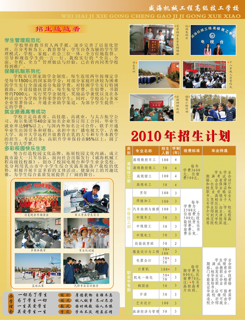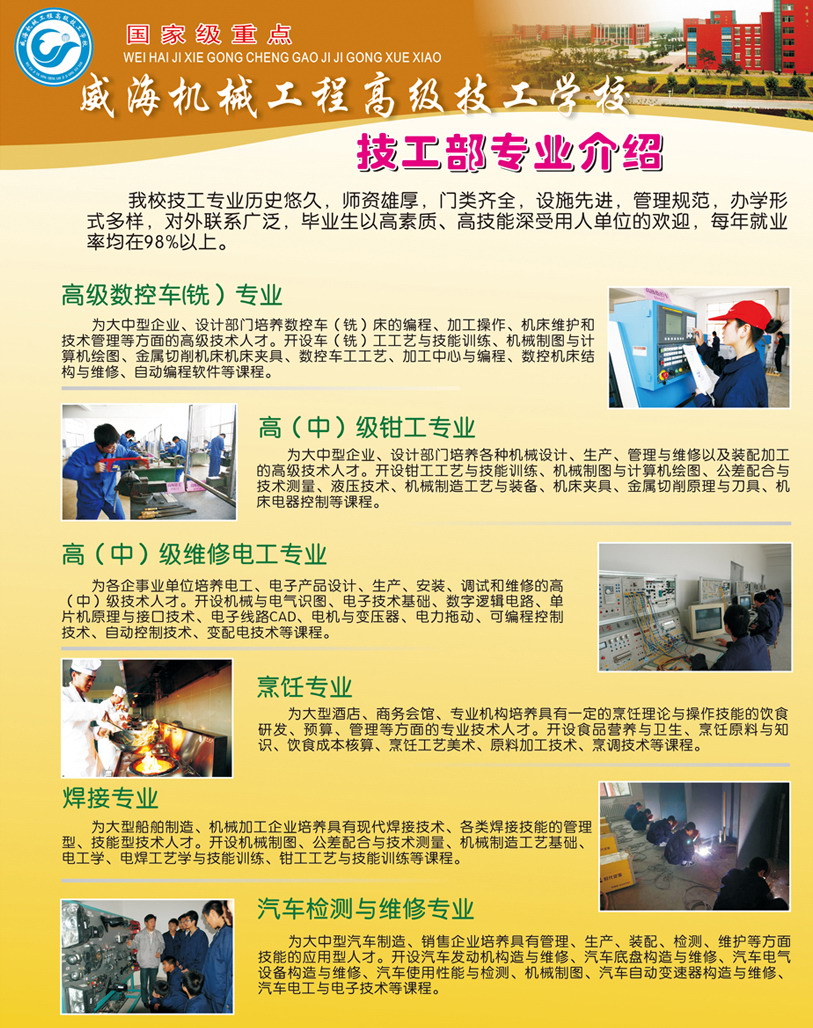 您的位置:山東技校網 >> 威海技校網 >> 威海市機械工程高級技工學校