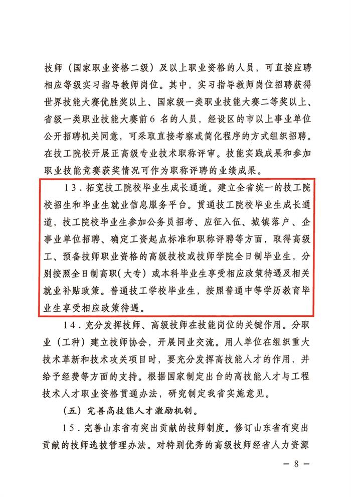 根據山東省人力資源和社會保障廳等部門發布的魯人社發【2016】22號文件,在參加公務員招考、應征入伍、企事業單位招聘、確定工資起點標準和職稱評聘、就業補貼政策等方面,預備技師享受本科生待遇。