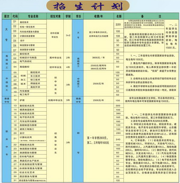 就業方向:主要面向青島現代造船、北船重工、武船重工等大中型企業安置工作。