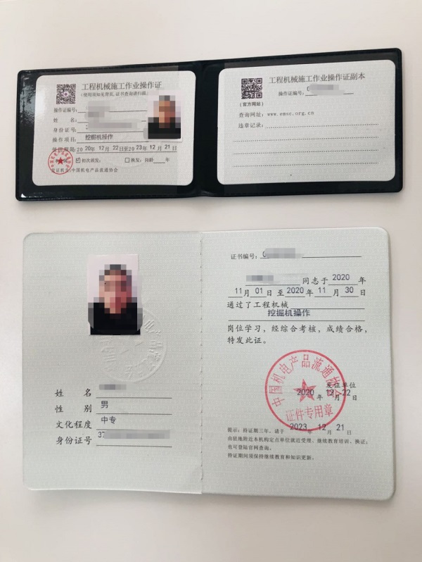 | 建設工程機械施工節能作業操作證 | 挖掘機操作員 | 建設工程機械委員會 | 2寸電子版照片1張,身份證和學歷證復印件1張 |