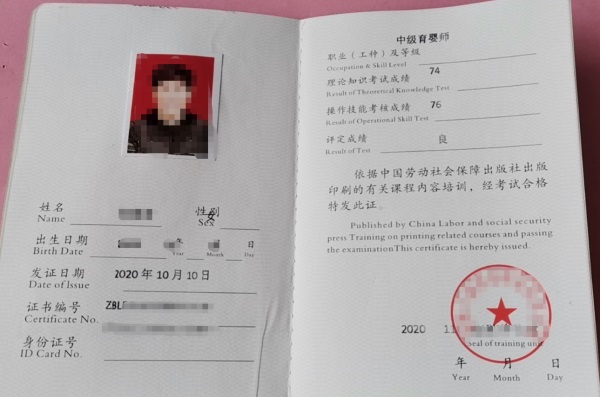 職業資格證書(中式烹調師、西點師、面點師中級、高級、技師)