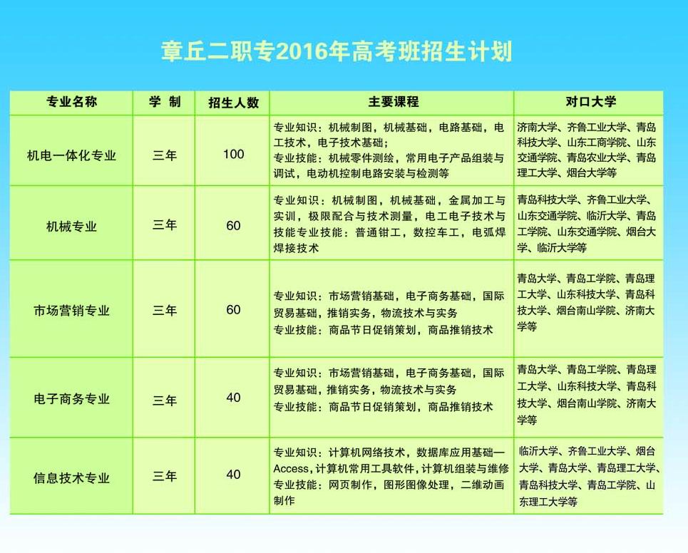 章丘第二職業(yè)中等專業(yè)學(xué)校 招生代碼652 |