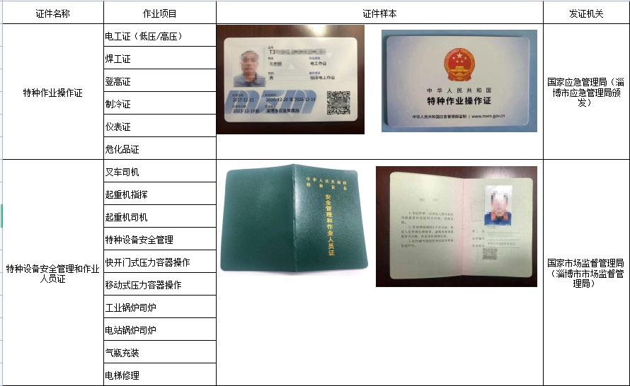 特種作業操作證:發證機關:國家應急管理局(淄博市應急管理局頒發)