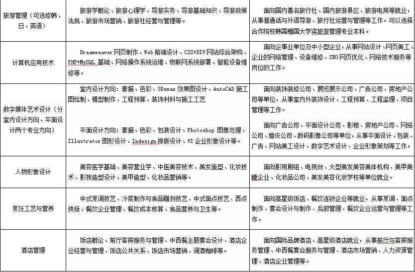 國際合作廣。學校先后與韓國、日本的院校開展合作,專門增開相關課程,為有意在境外求學和就業的學生提供便利。專業涉及高星級飯店運營與管理、旅游服務與管理、美發與形象設計。學生在學校完成學業后,可選擇就業,也可選擇到國外有關院校留學深造。
