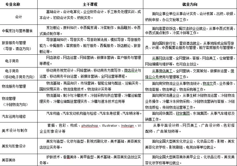 升學渠道暢。學校與相關企業聯合舉辦春季高考班,對有升學意向的學生進行專門培養;與國外院校合作,為有意到國外深造的學生提供幫助。普通中專完成學業后可通過對口單獨招生、春季高考、夏季高考等形式升入本、專科院校深造,三二連讀學生完成專科學業后可通過專升本考試升入本科院校深造。