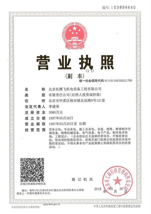 北京佐騰飛機電設備工程有限公司企業資質文件: