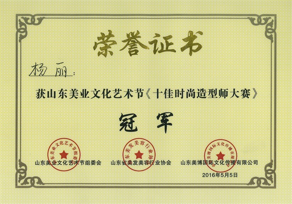 2019、2020、2021年被山東省美發美容行業協會,泰安市美容美發行業協會評為“年度先進培訓學校”